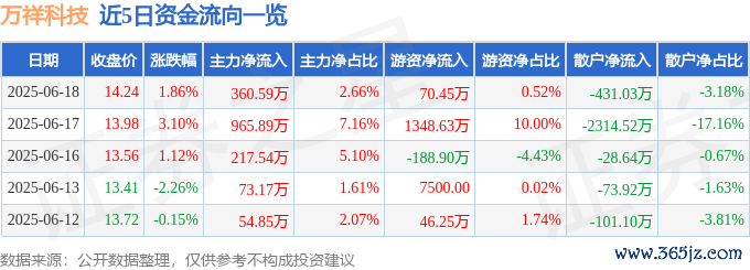 本站消息,截至2025年6月18日收盘,万祥科技(301180)报收于14.24元,上涨1.86%,换手率2.39%,成交量9.56万手金铺子配资,成交额1.35亿元。
