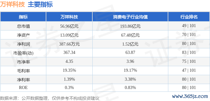 万祥科技2025年一季报显示,公司主营收入2.8亿元,同比上升34.47%;归母净利润387.66万元,同比上升2125.47%;扣非净利润307.07万元,同比上升129.28%;负债率28.27%,投资收益4.54万元,财务费用170.9万元,毛利率19.35%。万祥科技(301180)主营业务:主要从事消费电子精密零组件产品及动力/储能电池精密组件产品相关的研发、生产与销售。